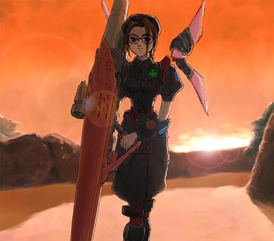 愛用武器レッドスコルピオが一番映えるのは、やはりUlt森の夕焼け!ということで、バックはUlt森エリア1です(って、手抜きすぎてわからんか…)。