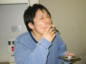 最後に目指すは師匠の席、こちらもお約束通り、かなり偉そうな師匠があろう事か机に足を上げてきんさんを出迎えております。